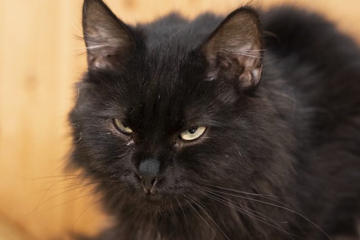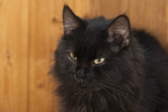 Симпотичный пушистый черный котик, любит людей и всегда рад общению. Достаточно спокойный по характеру