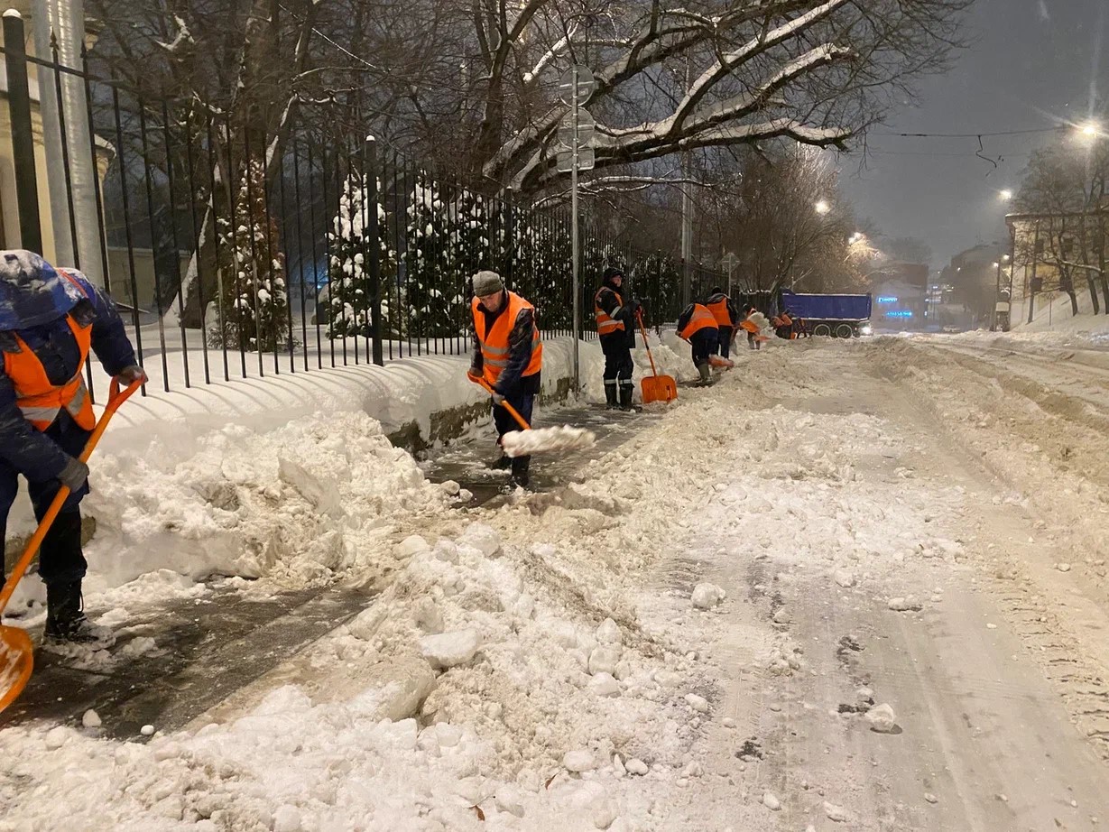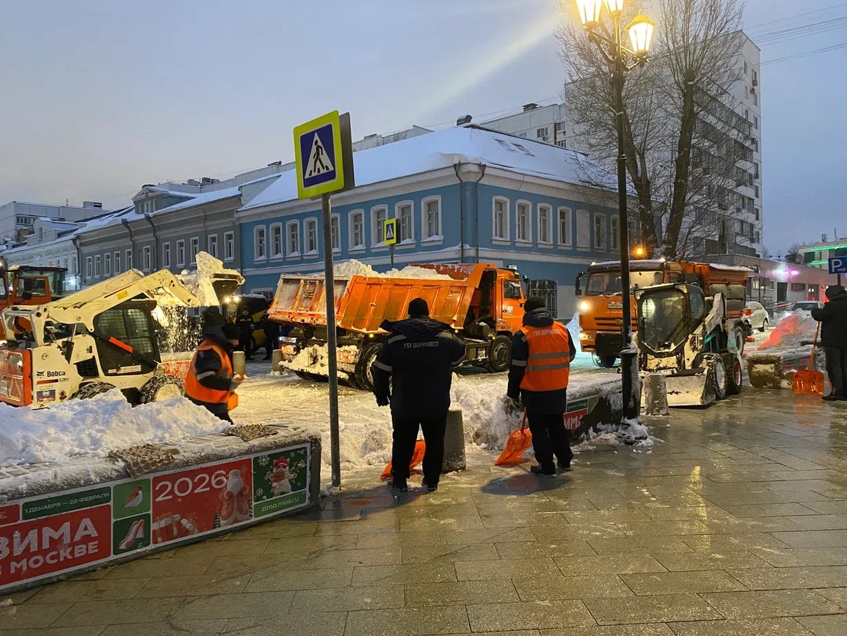 Сотрудники ГБУ "Доринвест" работают круглосуточно: если днем техника и люди борются с последствиями снегопада на основных магистралях и тротуарах, то ночью, когда движение стихает, начинается решающий этап генеральной уборки.